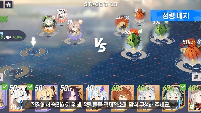 단순 정령 외에도 조합 버프 역시 구현된 것을 확인할 수 있었다. 공개된 정령 배치 화면에서 동일한 진영의 정령 3개를 배치했을 때 적용되는 버프 역시 동일하게 적용되는 것으로 보아 구축 방식 역시 비슷한 형태를 보여줄 것으로 예상된다. 이에 따라 같은 타입의 정령을 최대한 많이 배치하면서 버프를 챙기는 것 역시 중요 포인트가 된다.