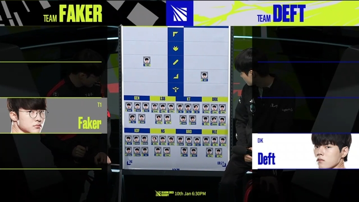 오늘 진행한 팀 드래프트 행사에서는 페이커와 데프트의 칼바람 나락 1:1 이벤트 매치와 대회의 밴픽 페이즈처럼 스네이크 방식으로 팀원을 차출하는 일정을 진행했다.