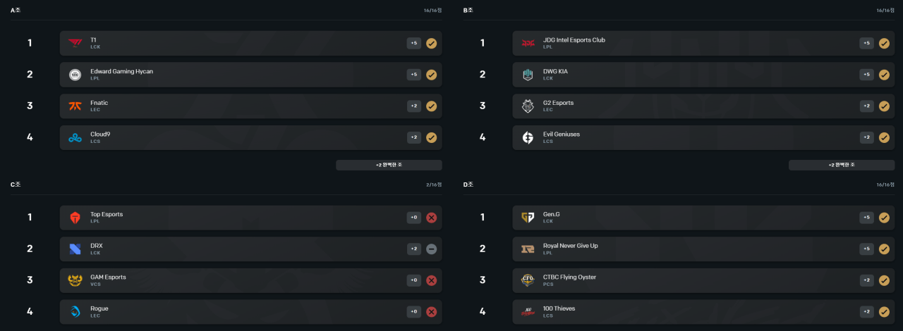 물론, 모든 스포츠에서 '절대'라는 예측은 존재할 수 없습니다. 하물며 다전제가 아닌 단판제로 진행되는 그룹스테이지 단계에서는 평소 자국 리그 내에서 만나보지 못한 선수들의 플레이 스타일과 빌드를 상대해야 하고 이러한 과정 속에서 '날로 먹는, 아니 날카로운 빌드(날빌)'로 불리는 생소한 전략 전술에 한 두번 당하는 건 어찌보면 당연한 통과의례라 보는 사람도 적지 않습니다.