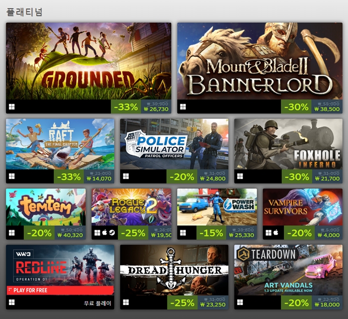 앞서 해보기 플래티넘 항목 = 스팀 특집 페이지 촬영