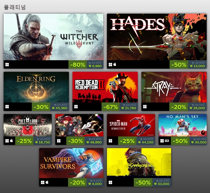 스팀 덱 이식 플래티넘 항목 (해외 게임 '멀티버서스' 미포함) = 스팀 특집 페이지 촬영