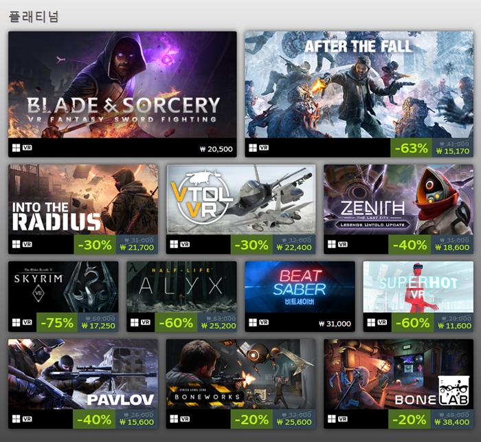 VR게임 플래티넘 항목 = 스팀 특집 페이지 촬영