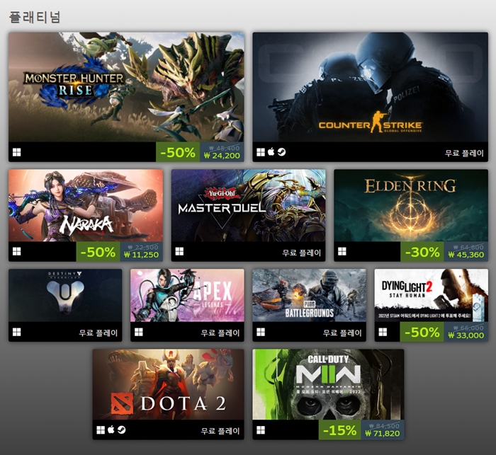 인기 출시작 플래티넘 항목 (국내 게임 '로스트아크' 미포함) = 스팀 특집 페이지 촬영
