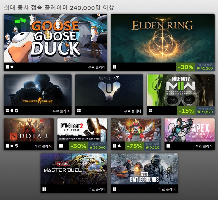 최다 플레이 플래티넘 항목 (국내 게임 '로스트아크' 미포함) = 스팀 특집 페이지 촬영