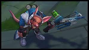 자운에서 알아주는 악당이라는 트위치의 원 배경과는 달리 삼성 갤럭시 화이트 트위치는 똘망똘망한 눈매와 큰 뱅뱅이 안경을 착용하고 있으며 에너지 드링크로 추정되는 음료를 석궁에 매달아두고 귀환 시에는 협곡 바닥을 열심히 굴러다니고 있죠.
