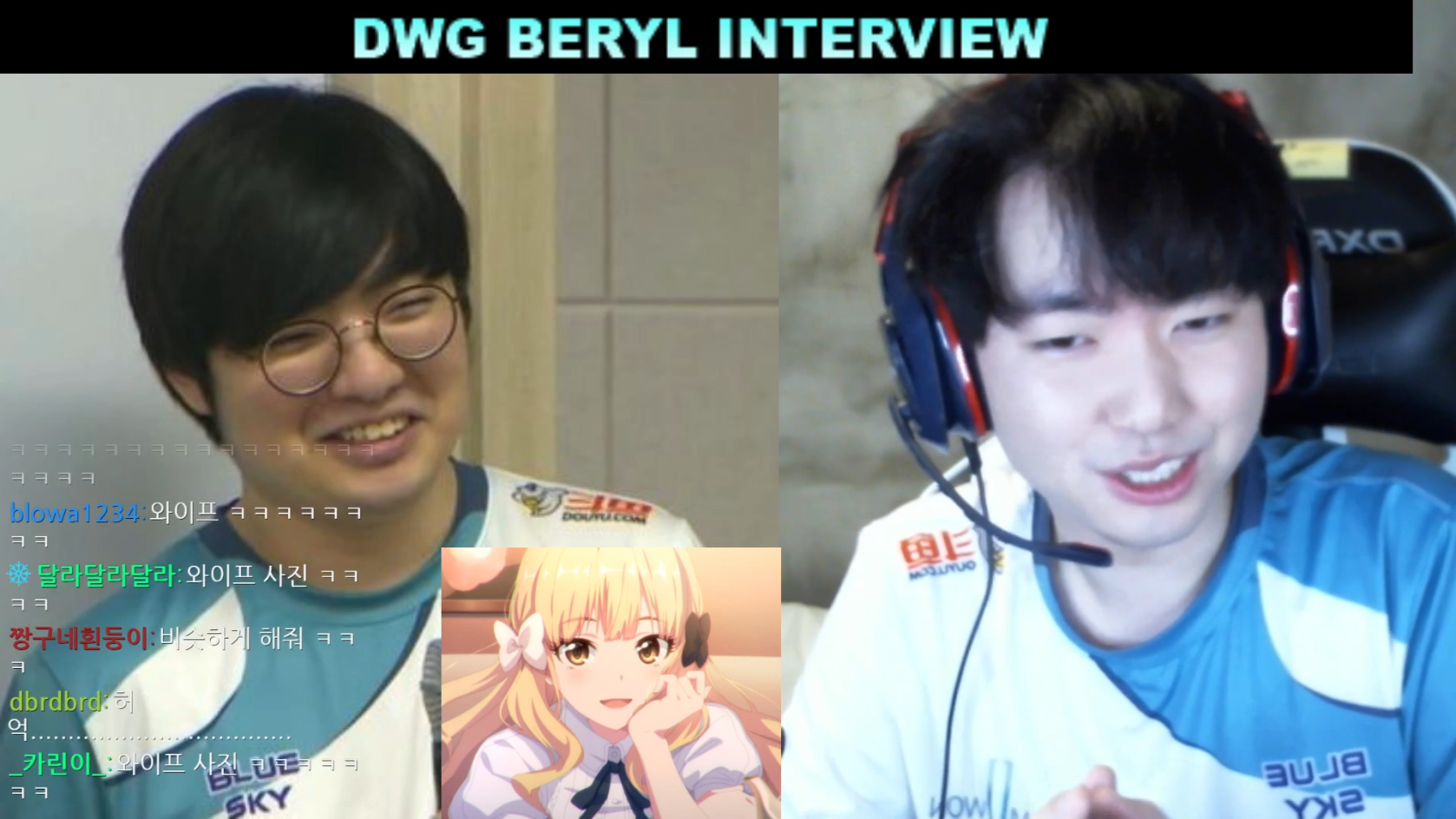 LCK 해설자 강퀴의 개인 방송에서 우승 스킨 제작에 대한 이야기를 나누고 있는 베릴