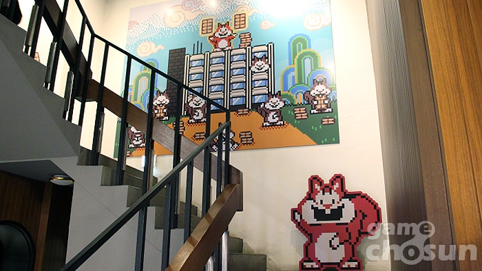 태극당 본점 2층의 이벤트 공간으로 이어지는 통로 = 게임조선 촬영