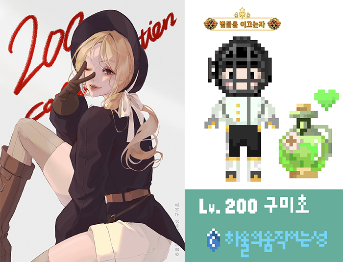 구미호의 200레벨을 기념해 같은 킹덤 유저인 '안소진(좌)'과 '새콤(우)'이 각각 축전을 전달했다 = 구미호 제공