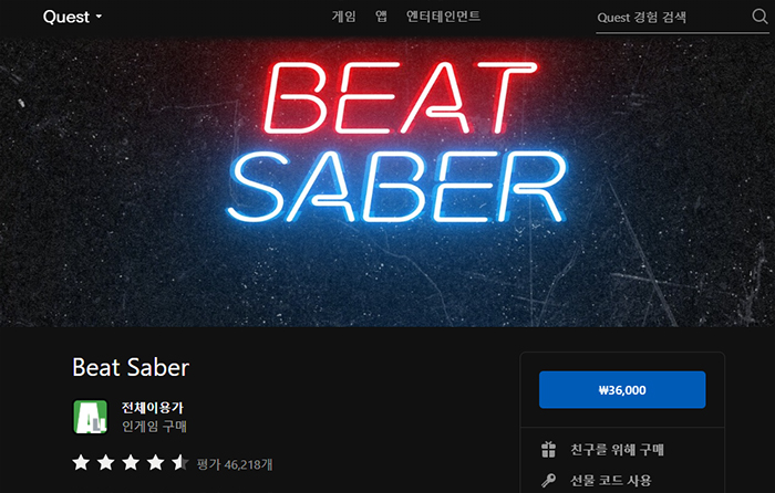 그래서 보통 비트 세이버를 즐기려는 VR 게이머들은 비트 세이버 만큼은 메타 퀘스트 상점에서 사는 경우가 상당합니다. 특히 메타 퀘스트 2는 선 없이 기기만으로 커스텀곡까지 즐길 수 있어 할인 받기 쉽지 않은 스팀을 고집할 이유가 적습니다. 스팀 커뮤니티 기능이 없는건 아쉽긴 하지만, 가격과 편의성을 생각해 메타 퀘스트 버전을 구입하는 것도 나쁘지 않은 선택이죠. 다만, 기본 가격은 메타 퀘스트 버전이 스팀 버전보다 한화로 5,000원 더 비싸니 구입 시 고려할 필요가 있습니다.