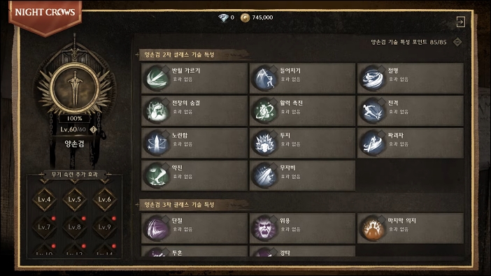 직업 선택과 승급으로 성장 토대를 구축했다면, 승급 단계에 따라 획득하게 되는 기술들은 ‘무기 숙련’ 시스템을 통해 완성된다. 무기 숙련 시스템에서는 각 직업 계열의 무기를 사용해 획득하게 되는 ‘기술 특성 포인트’를 이용해 보유한 기술을 더욱 특화 시키거나 기존보다 더 강력하거나 유동적인 기술로 완성해갈 수 있다.