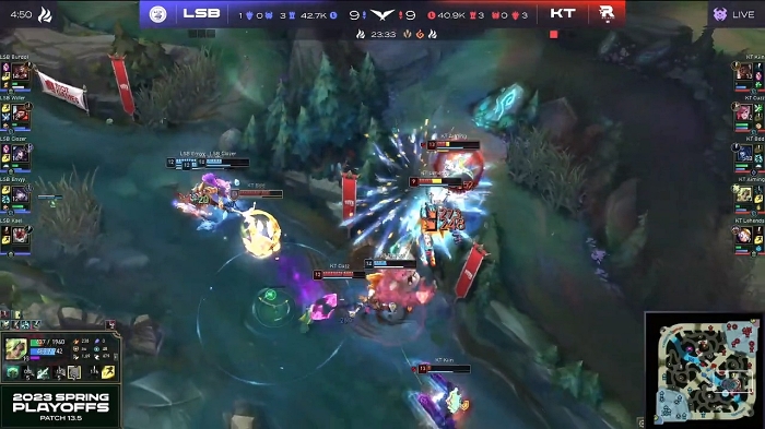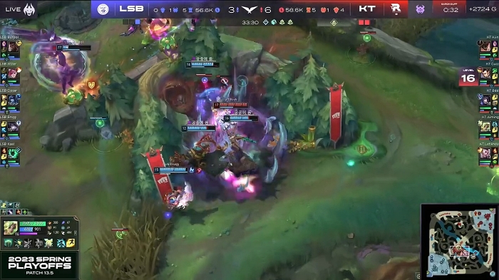 이번 경기에선 정규 시즌을 3위로 마감한 KT 롤스터와 6위로 마감한 리브 샌드박스가 맞붙었다. KT 롤스터는 1년여 만에 말파이트를 선택해 강력한 궁극기로 한타를 쓸어가며 3:1로 플레이오프 2라운드에 진출했다.