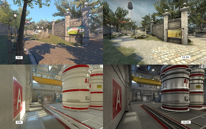 소스2 도구와 랜더링 기능을 활용해 기존 맵에 대한 개선도 이뤄졌다. 고가도로 맵은 전면 개편이 이뤄지는 한편, 핵 시설과 같은 맵은 사실적인 재질, 조명 환경 및 반사를 구현하는 물리 기반 랜더링 및 소스2 조명 효과가 적용된다. 또 더스트2와 같은 인기 고전 맵은 조명과 캐릭터 인식도 개선 외에는 오리지널리티를 유지한다.