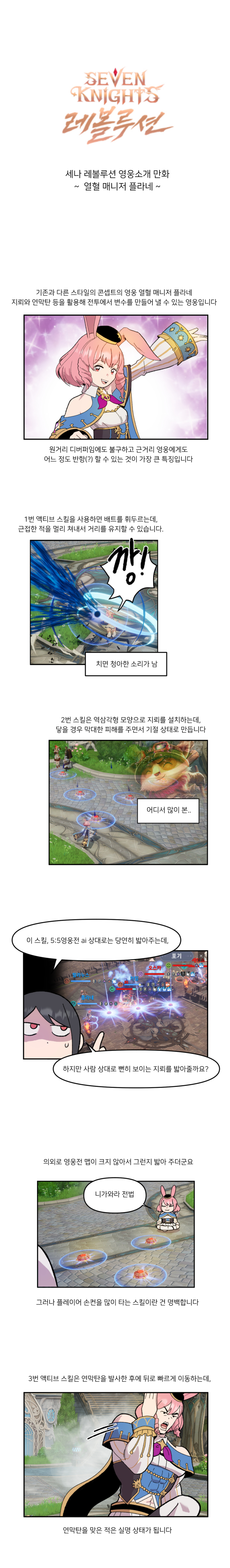 넷마블이 서비스하는 MMORPG '세븐나이츠 레볼루션'의 웹툰 '세나 레볼루션 영웅 소개 만화' 32편 '치고 빠지기'편이 공개됐다.