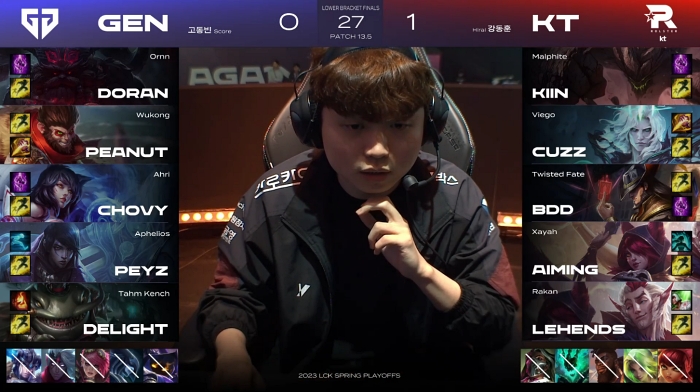 젠지는 오른, 오공, 아리, 아펠리오스, 탐 켄치를, KT는 말파이트, 비에고, 트위스티드 페이트, 자야, 라칸을 선택했다.
