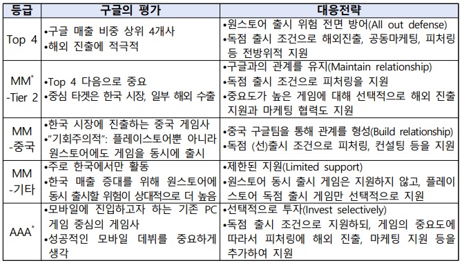 구글의 게임사별 등급 및 대응전략 = 공정위 보도