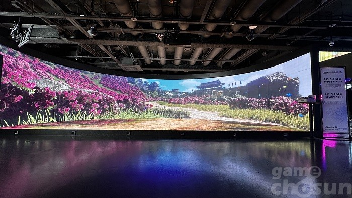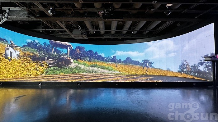 가로 31.4m의 초대형 미디어월을 장식한 검은사막 아침의 나라 = 게임조선 촬영