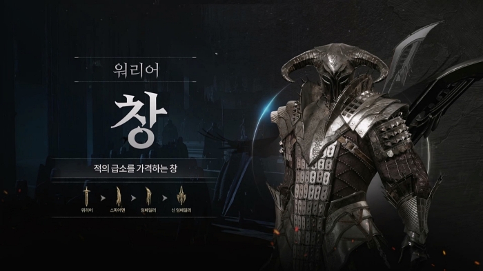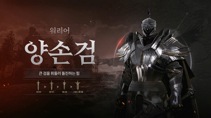 워리어는 ‘양손검’과 ‘창’ 직업 중 하나로 전직할 수 있다. 양손검 직업은 무겁고 커다란 검을 휘둘러 강력한 파괴력으로 적을 공격한다. 창을 무기로 사용하면 다수의 적을 당기거나 속박해 적의 움직임을 봉쇄할 수 있다.