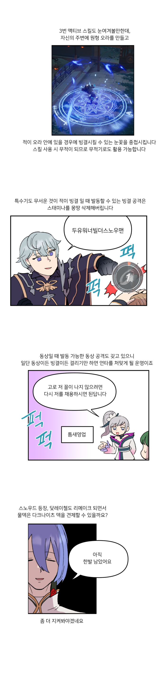 '세나 레볼루션 영웅 소개 만화'는 게임 내 등장하는 다채로운 영웅들의 특징을 소개하는 한편, 각 영웅들이 가진 스토리를 새롭게 각색해 또다른 즐길거리를 제공하고 있다. 이번 36편에서는 물속성 신규 영웅 '싸늘한 분노 스노우드'의 주요 특징에 대해서 소개함과 더불어, 그의 비하인드 스토리를 각색해 큰 재미를 주고 있다.