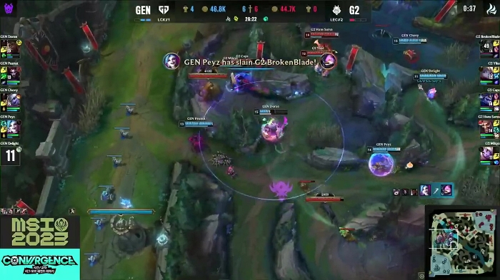 전 세계 각 지역 리그 오브 레전드 리그 우승팀이 모여 각축을 겨루는 국제 대회 미드 시즌 인비테이셔널 2023(Mid-Season Invitational 2023, MSI 2023) 브레킷 스테이지 첫 경기가 젠지 e스포츠의 승리로 끝났다.