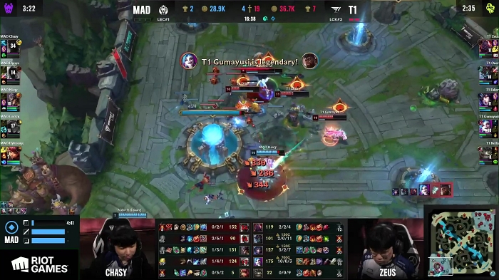 이번 상위권 1라운드 두 번째 경기는 LCK 준우승팀 T1과 LEC 우승팀 매드 라이온스가 맞붙었다. 첫 세트에서 위태롭게 흔들리며 불안정한 모습을 보여주던 T1이 대역전극을 시작으로 사기를 끌어올려 3:0으로 완승, 상위권 2라운드로 앞서 나갔다.