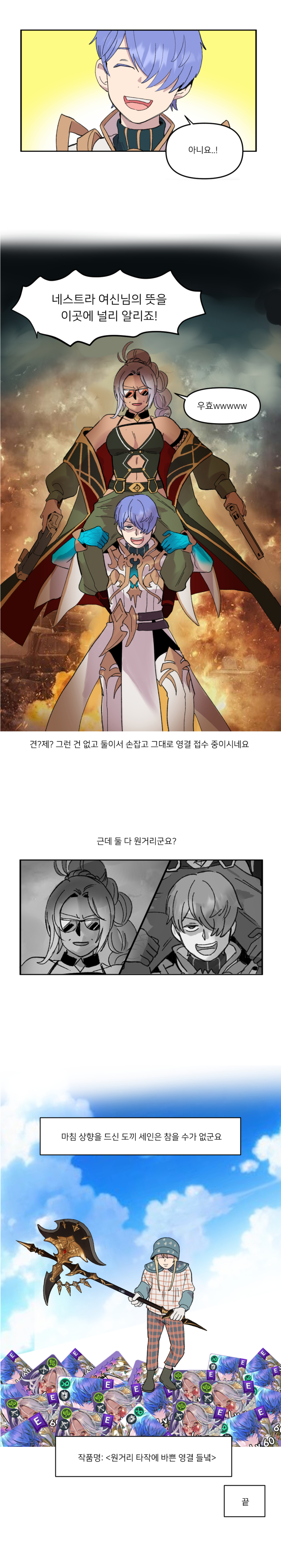 * 본 웹툰은 게임조선과 웹툰 작가 국도 님의 협업으로 제작되고 있으며, 넷마블의 세븐나이츠 레볼루션 공식 설정과 상이할 수 있습니다.