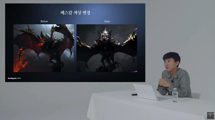 금강선 CCO는 "붉은 달 같은 경우 카제로스가 부활하는 경과를 보여주기에 위해 무드를 바꾼 것"이라고 전했으며 동일하게 색상이 변한 베스칼과 관련해서는 "이전에 붉은 색일때 커뮤니티 내에서 타 게임의 몬스터를 표절한 것이 아니냐는 의견이 나와 수정을 한 것"이라고 해명했다.