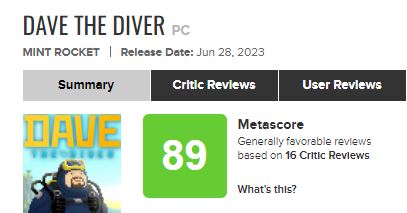 이는 평론가, 게임 리뷰에 공신력이 있는 외신 평가에서도 구체화됐다. 북미 게임 전문매체 IGN에선 “단지 재미있는 모험 RPG가 아니다. 예상했던 것보다 더욱 놀랍다”라고 극찬하며, 출시만으로 주목을 받았던 글로벌 대작 게임과 동일한 점수를 ‘데이브’에 매겼다. 여타 외신들도 “한번 시작하면 멈추기가 어렵다”, “끊임없이 등장하는 새로운 것들이 너무 즐겁다”라며 저마다 화려한 수식어구로 ‘데이브’를 호평했다. 이러한 리뷰들이 하나씩 더해지며 10일 기준 북미 게임 평가 사이트 메타크리틱에서 비평가 평점 89점, 오픈크리틱 89점을 기록하는 등 글로벌 게임 시장에서 한국 게임의 위상을 높였다.