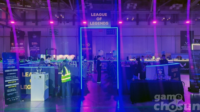 다른쪽엔 리그 오브 레전드와 발로란트 등 인기 게임의 현장 체험 행사인 스파링 존이 마련됐다 = 게임조선 촬영