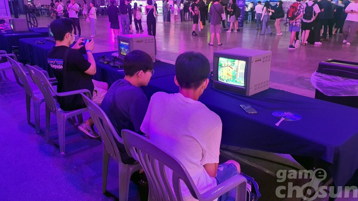 추억을 느낄 수 있는 레트로 게임존에는 가족 단위 게이머들이 많았다 = 게임조선 촬영