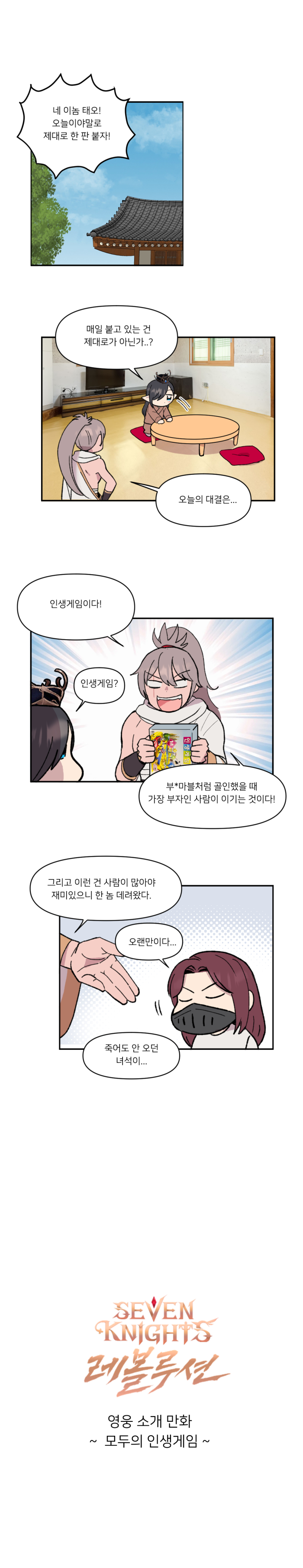 * 본 웹툰은 게임조선과 웹툰 작가 국도 님의 협업으로 제작되고 있으며, 넷마블의 세븐나이츠 레볼루션 공식 설정과 상이할 수 있습니다.