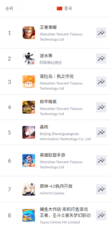 중국 iOS 순위 = 모바일 인덱스 갈무리