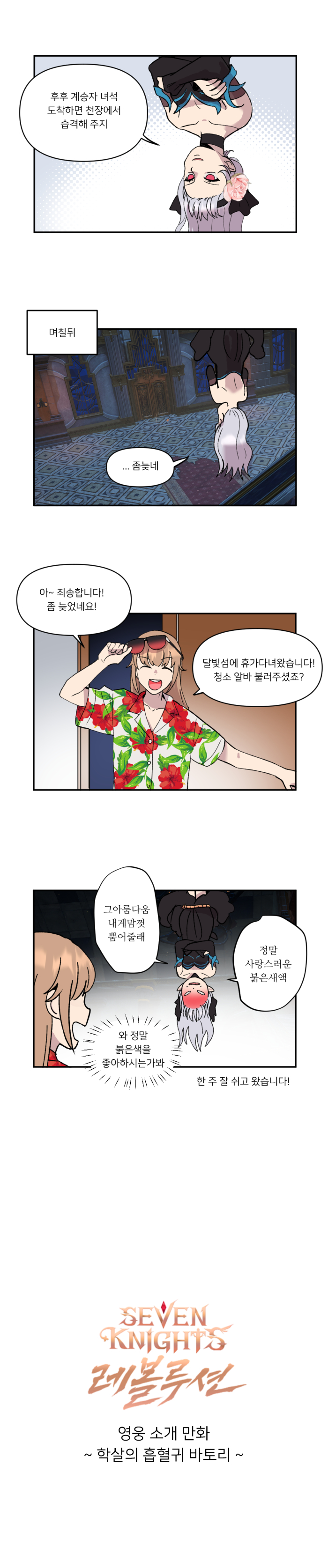 넷마블이 서비스하는 MMORPG '세븐나이츠 레볼루션'의 웹툰 '세나 레볼루션 영웅 소개 만화' 52편 '흡혈귀는 툭하면 힐한다'편이 공개됐다.