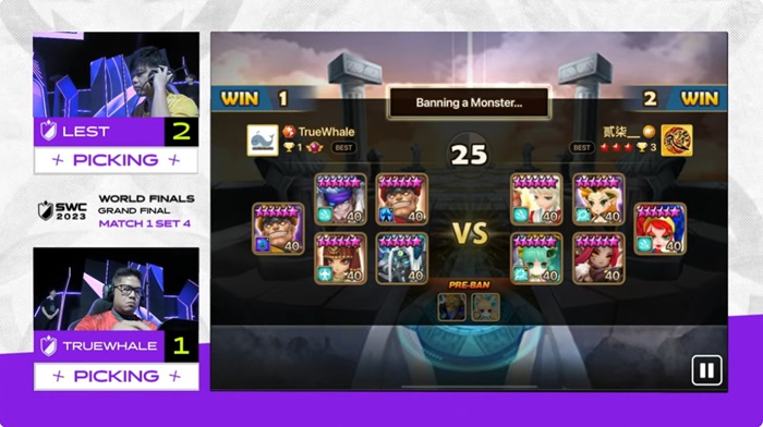 하지만 마지막 라운드는 달랐다. 빛 요괴무사를 가져간 트루웨일 선수에 대항하기 위해 레스트 선수는 불 피에레트를 픽하면서 눈길을 끌었다. 레스트 선수는 빛 요괴무사한테 초반 집중하면서 자르는데 집중했고, 이전까지 활약했던 상황과 다르게 초중반 컷되면서 상황은 알 수 없게 됐다. 이어진 상황에서 한 턴 한 턴 손에 땀을 쥐는 상황이 이어졌다. 그러나 결국 이전 경기들과 마찬가지로 단 한 턴의 차이로 레스트 선수가 트루웨일 선수의 불 바이슨을 처리하면서 승리했다.