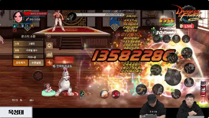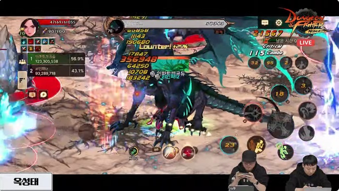 재해 마고스를 시연 중인 옥성태 디렉터와 고민용 콘텐츠 총괄 = 던파 모바일 드라이브 갈무리