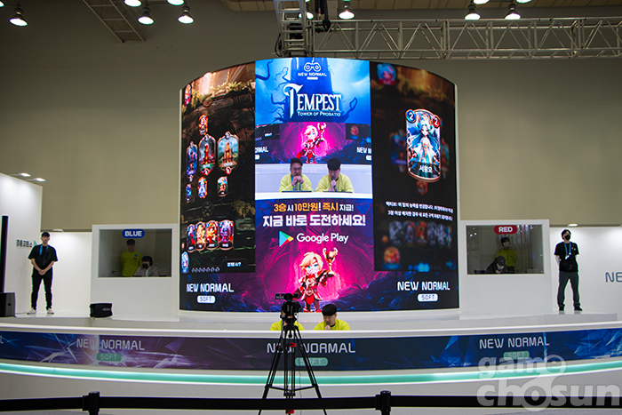 이런 와중에 신생개발사로서는 이례적으로 대형 부스를 운영하며 많은 이슈몰이를 한 게임사가 있다. 바로 '템페스트: 타워오브프로바티오'를 출품한 뉴노멀소프트다. 뉴노멀소프트는 카오스온라인, 이카루스이터널 등을 개발한 인원이 연초에 의기투합하여 신생개발사다. 그동안 많은 모바일 MMORPG를 선보여온 개발진이지만, 어째서인지 첫 타이틀로 국내에서는 다소 진입장벽이 높고, 레드오션으로 파악되는 CCG를 선보여 이례적이라는 평을 받아왔다.