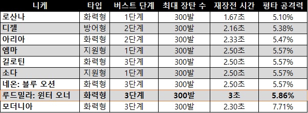 하모니 큐브와 오버로드 옵션의 경우에는 '루드밀라: 윈터 오너'의 1번 패시브 스킬 효과인 탄환 충전 효율을 높이기 위해 '장탄 수 증가' 관련 옵션이 추천될 만하다.