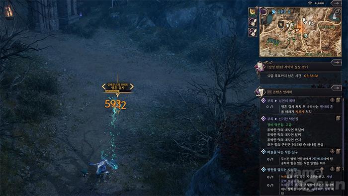 삼거리에서 영혼 검사를 처치하면 영혼 구슬이 길을 안내한다. = 게임조선 촬영
