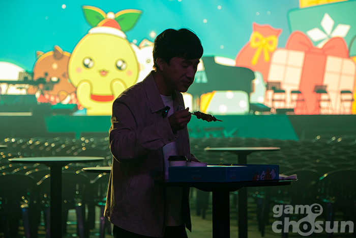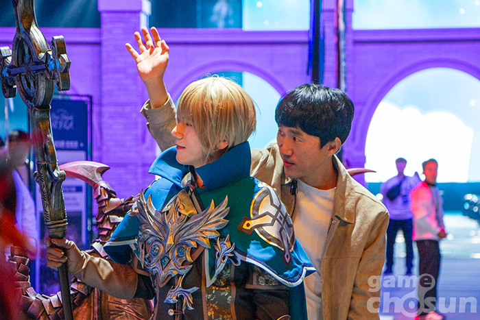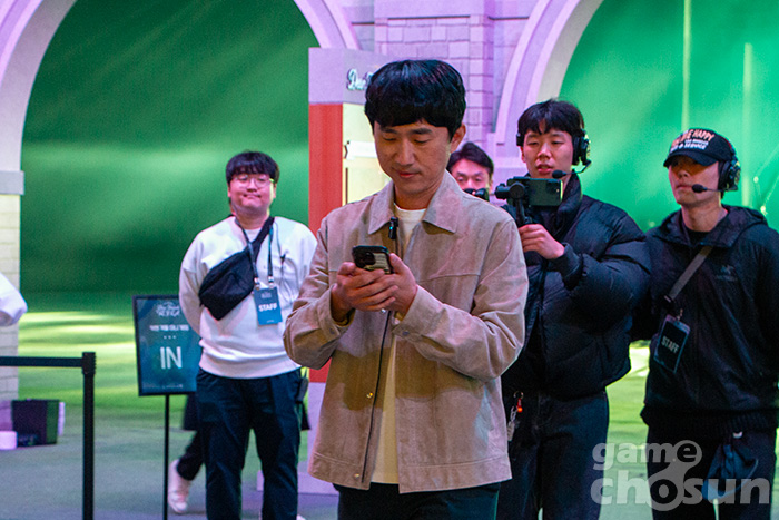 금강선 디렉터는 무대 이후에도 행사장에 처음 입장하는 모험가를 대상으로 코스어 사이에서 수줍게 인사를 하는가 하면, 먹방을 찍기도 하고, 이용자들과 사진 촬영을 하는 등 허심탄회한 모습을 보여줬다.