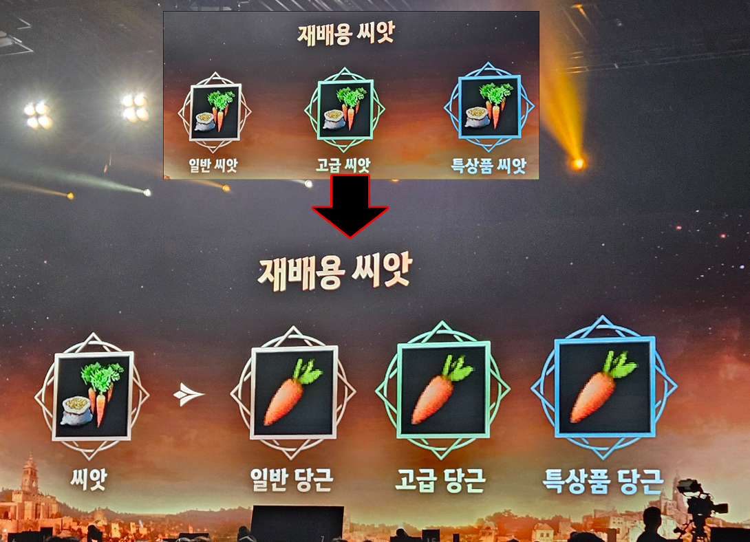 김재희 총괄PD가 강조한 방향성은 '성장 동기', '플레이 목표', '복잡함 간소화'를 꼽았다. 먼저 가장 강조한 것은 이동의 간소화다. 마그누스로 대표되는 텔레포트 기능을 강화해 주요 지역과 검은사막에 즉시 이동 기능을 추가해 언제든 쉽게 이동할 수 있게 됐다. 아이템을 간소화하고 콘텐츠의 추가도 발표했다. 20종에 육박하는 블랙스톤을 용도에 따라 5종 내외로 통합하게 된다. 이 외에도 씨앗, 비약, 수정 등 종류가 많은 아이템을 통합하거나 스택화 해 최대한 압박을 줄이는 것이 목적이다.