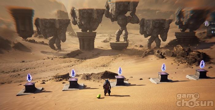 석상이 들고 있는 발판을 일렬로 맞추는 것이 핵심 = 게임조선 촬영