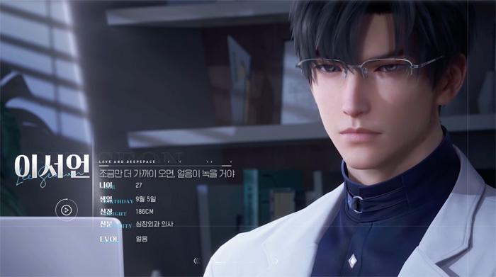 러브앤딥스페이스의 주요 타겟층이 철저히 여성 중심이다보니 남성 게이머들은 상당히 위화감이 생기는 게임이기도 하기에 이번 인물열전의 주인공은 게임의 남성 주인공 중 하나인 '이서언'이라는 캐릭터에 대해 심도있게 살펴보는 시간을 가져봤다. 참고로 본 기획은 쓰는 필자는 대한민국 평균에 약간 못 미치는 외모와 키, 피지컬을 가진 평범한 '남성'임을 먼저 밝힌다. 절대 질투나서 쓰는 글이 아니다. 절대 아니다.