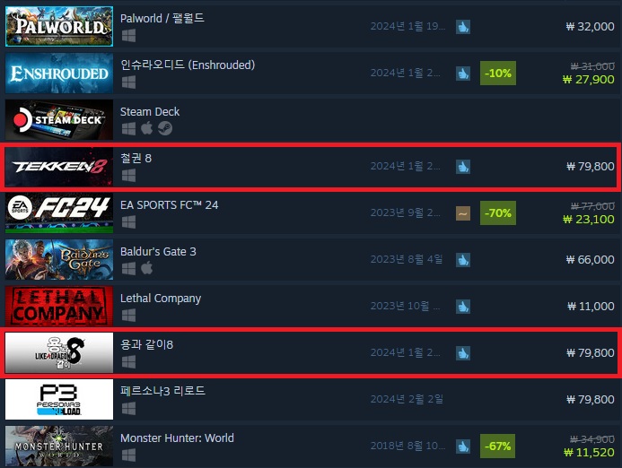 물론, 용과 같이8 본판은 완성도 높은 게임성과 제대로 살린 B급 감성, 훌륭한 서사로 호평을 받으며 29일 기준 스팀 평가 '매우 긍정적'을 달성하며, 전 세계 최고 매출 TOP10에 오르는 등 철권 8 못지않게 순항하고 있다.