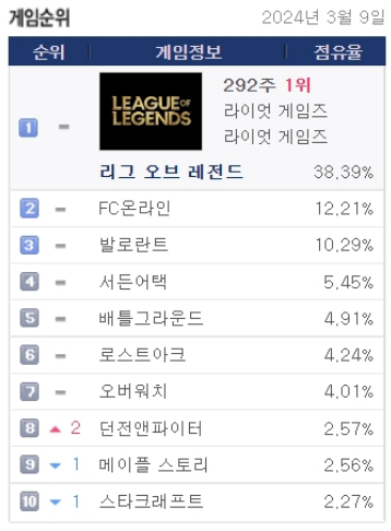 지난 2020년 6월 서비스를 시작한 '발로란트'는 꾸준한 업데이트와 이벤트를 통해 서서히 저변을 넓혀왔다. 2022년 9월 처음으로 PC방 인기순위 TOP5에 등극했으며, 이어 10일만에 TOP3에 등극하며 대세 게임으로 자리매김했다. 이후 꾸준히 상승세를 기록한 발로란트는 2023년 7월 첫 8%를 돌파하기도 했다.