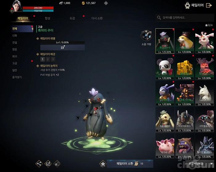 에오스블랙은 전작인 레드를 기반으로 하고 있는 만큼 손쉽게 익숙해질 수 있는 것이 특징이다. 기본적으로 영혼체와 신수, 패밀리어 시스템을 채용하고 있어 다방면에서 능력치를 상승시킬 수 있다. 테스트 기간인 만큼 상시로 소환권을 배포하고 있어 높은 등급의 신수와 패밀리어를 획득할 수 있는데, 이 경우 확연하게 체감된다.
