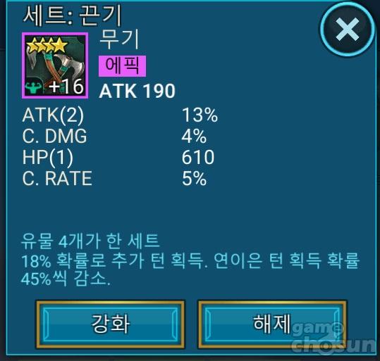 또한, 유물에는 ATK 옵션과 ATK% 옵션이 따로 붙는다. 고정 ATK 옵션은 거의 사용되지 않으며 ATK% 옵션이 주로 사용된다. 다만, ATK 계수의 경우 단순 딜 상승이기 때문에 ATK 계수 챔피언이더라도 후술할 C. RATE와 C. DMG를 더욱 중요 시 여기는 경우가 많다. 다만, 무기에는 주옵으로 고정 ATK 옵션이 무조건 붙는다.