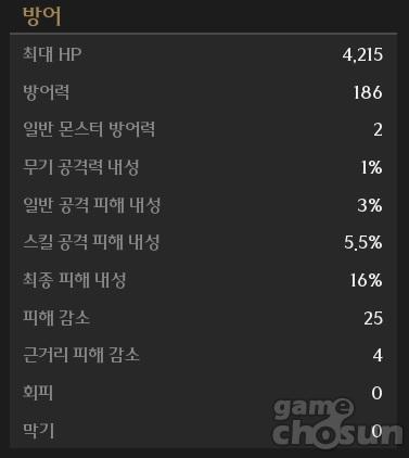 다만, 최종 피해 내성이 어느 정도의 효율을 보여주는지 알 수가 없기 때문에 직접 피해를 확인해봤다. 실험은 60레벨 지역 '감시자의 모래 협곡에서 선공 몬스터인 '핏빛 수호병'을 대상으로 진행했다. 실험에 사용된 캐릭터는 방어력 188(방어력+일반 몬스터 방어력)에 피해 감소 29(피해 감소+근거리 피해 감소), 일반 공격 피해 내성 3%, 최종 피해 내성 1%를 보유한 캐릭터이다.