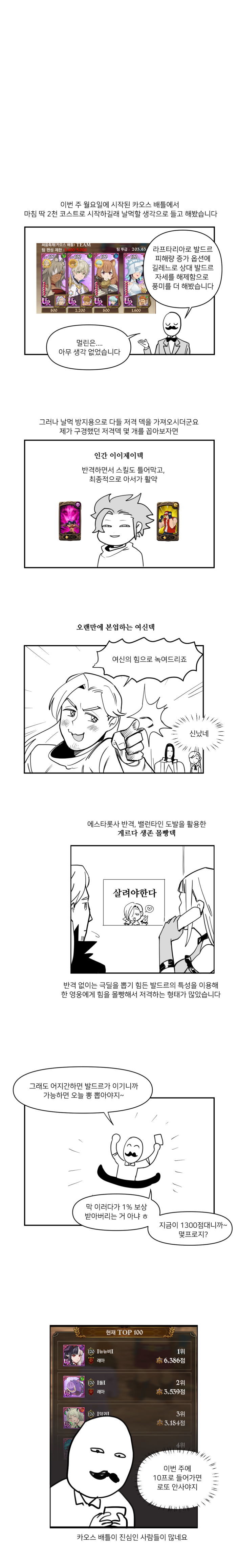 현존 가장 높은 공격력을 가진 '불굴 에스카노르'의 고랭크 공격도 받아내고 반격을 통해 큰 피해를 줄 수 있다보니 PVP 향방을 완전히 불명덱쪽으로 바꿔버린 영웅이기도 하다.