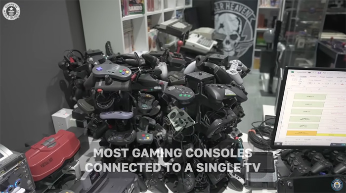 사우디아라비아에 사는 'Ibrahim Al-Nasser'는 비디오 게임 수집가로 각종 콘솔, 컴퓨터, 플러그앤플레이 게임, HDMI 게임 스틱, 안드로이드 게임에 이르기까지 수백 개의 게임 콘솔을 보유하고 있다고 전했다. 그는 이 게임기들을 이용해 단 하나의 TV에 연결하기로 결정해 현재 기록에 이르게 된 것.