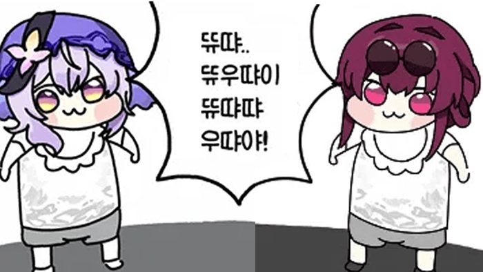 하지만 정작 이야기를 진행할 수록 은근히 아는 게 적거나 빗나간 분석을 내놓는 빈도수가 늘어나고 호되게 당하는 모습을 많이 노출하며 그 체면을 많이 구겨먹었으니 이렇게 놀려먹기 좋은 소재를 두고 게이머들이 가만히 있을리 없으니 AI의 힘을 빌려 댕청미를 한껏 살린 뜌땨 소재의 노래가 등장하게 된 것이다.