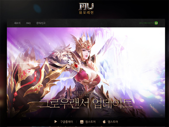뮤 오리진은 서비스 종료를 공지한 현재도 새로운 클래스가 홈페이지 메인을 장식하고 있다